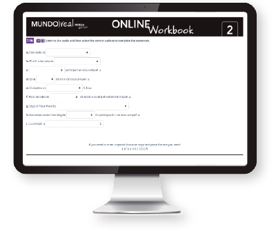 Every student and teacher using Mundo real Second Edition gets free Premium online access to ELEteca, a sophisticated LMS platform and digital hub that extends the Mundo real Second Edition program and offers many more opportunities for students to learn and use Spanish.